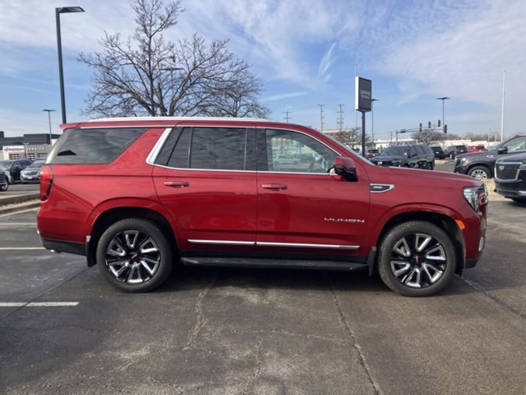 FRESH LOCAL TRADE!! 4X4!! PANORMAIC SUNROOF!! HD SURROUND VISION! REAR PEDESTRIAN ALERT! HEATED STEERING WHEEL! HEATED AND COOLED SEATING! BOSE PREMIUM SOUND SYSTEM! KEYLESS OPEN AND KEYLESS START!! PREMIUM SMOOTH RIDE SUSPENSION! HANDS FREE POWER LIFTGATE! LANE KEEP ASSIST WITH LANE DEPARTURE WARNING! 22 INCH BLACK GLOSS WHEELS WITH CHROME ACCENTS! REAR MEDIA AND NAV PACKAGE 10.2 INCH TOUCHSCREEN!! BLUETOOTH AUDIO STREAMING!! WIRELESS APPLE CARPLAY AND ANDROID AUTO! HEATED SECOND ROW SEATS! BEAUTIFUL CAYENNE RED TINTCOAT EXTERIOR COLOR WITH JET BLACK INTERIOR! READY TO BRING A SMILE TO SOMEONES FACE! :)4WD, 12-Way Power Seat Adjusters, 2 Presets For Outside Rearview Mirrors, 2 Presets For Power Driver Seat, 3.23 Rear Axle Ratio, 3rd Row 60/40 Power-Folding Split-Bench Seat, 3rd row seats: split-bench, 4-Wheel Disc Brakes, 9 Speakers, ABS brakes, Air Conditioning, Alloy wheels, AM/FM radio: SiriusXM with 360L, Apple CarPlay/Android Auto, Auto High-beam Headlights, Auto-dimming Rear-View mirror, Automatic Emergency Braking, Automatic temperature control, Bodyside moldings, Bose 9-Speaker Stereo Audio System Feature, Brake assist, Bright Chrome Bodyside Moldings, Bright Front & Rear Door Sill Plates, Bumpers: body-color, Chrome Door Handles w/Body-Color Strip, Compass, Delay-off headlights, Driver door bin, Driver vanity mirror, Dual front impact airbags, Dual front side impact airbags, Dual-Pane Panoramic Power Sunroof, Electronic Stability Control, Emergency communication system: OnStar and GMC connected services capable, Extra Capacity Cooling System, Following Distance Indicator, Forward Collision Alert, Four wheel independent suspension, Front & Rear Park Assist, Front anti-roll bar, Front Bucket Seats, Front Center Armrest, Front dual zone A/C, Front fog lights, Front Pedestrian Braking, Front reading lights, Fully automatic headlights, Garage door transmitter, Hands-Free Power Programmable Rear Liftgate, HD Radio, HD Surround Vision, Heated & Ventilated Driver & Front Passenger Seats, Heated 2nd Row Outboard Position Seats, Heated Automatic Steering Wheel, Heated door mirrors, Heated Driver & Front Passenger Seats, Heated front seats, Hitch Guidance w/Hitch View, Illuminated entry, In-Vehicle Trailering App, Inside Rear-View Auto-Dimming Mirror, Integrated Trailer Brake Controller, IntelliBeam Automatic High Beam On/Off, Lane Change Alert w/Side Blind Zone Alert, Lane Keep Assist w/Lane Departure Warning, Leather steering wheel, License Plate Front Mounting Package, Low tire pressure warning, Max Trailering Package, Memory seat, Molded Splash Guards, Occupant sensing airbag, Outside Heated Power-Adjustable Mirrors, Outside temperature display, Overhead airbag, Overhead console, Panic alarm, Passenger door bin, Passenger vanity mirror, Perforated Leather Seating Surfaces, Polished Exhaust Tip, Power door mirrors, Power driver seat, Power Liftgate, Power passenger seat, Power Release 2nd Row 60/40 Split-Folding Bench Seat, Power Release 2nd Row Bucket Seats, Power steering, Power Tilt & Telescopic Steering Column, Power windows, Preferred Equipment Group 4SA, Premium Smooth Ride Suspension, Radio: AM/FM/SiriusXM, Radio: AM/FM/SiriusXM w/Navigation, Rain sensing wipers, Rear air conditioning, Rear anti-roll bar, Rear Cross Traffic Alert, Rear Media & Nav Package, Rear Pedestrian Alert, Rear reading lights, Rear seat center armrest, Rear Seat Media System, Rear window defroster, Rear window wiper, Remote keyless entry, Roof rack: rails only, Safety Alert Seat, Security system, SiriusXM w/360L, SLT Luxury Package, SLT Luxury Plus Package (DISC), Speed control, Speed-sensing steering, Split folding rear seat, Spoiler, Steering wheel mounted audio controls, Tachometer, Telescoping steering wheel, Tilt steering wheel